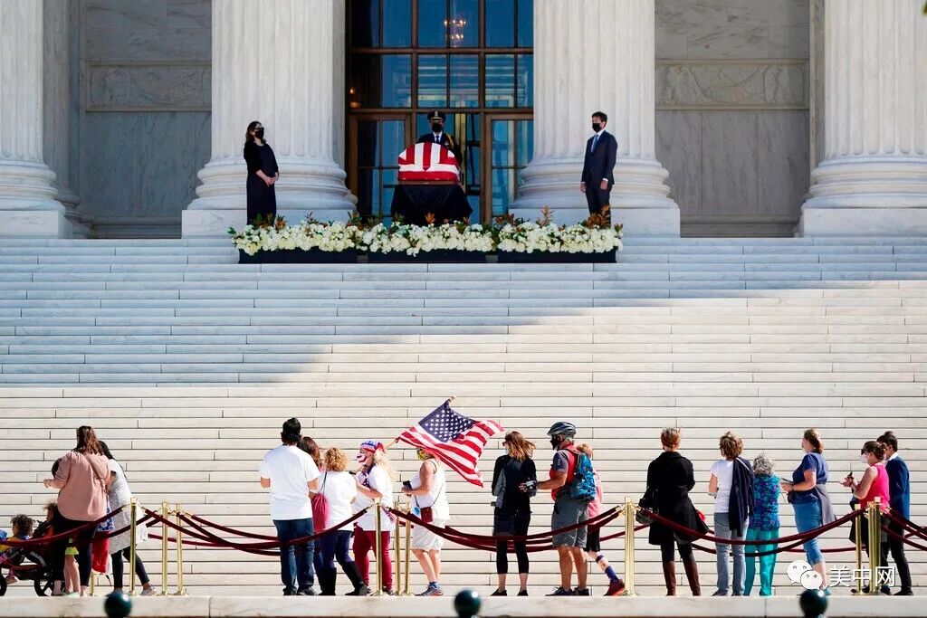 周三(9月23日),大法官金斯伯格(Ruth Bader Ginsburg)的灵柩停放在最高法院外,供人们瞻仰致敬。