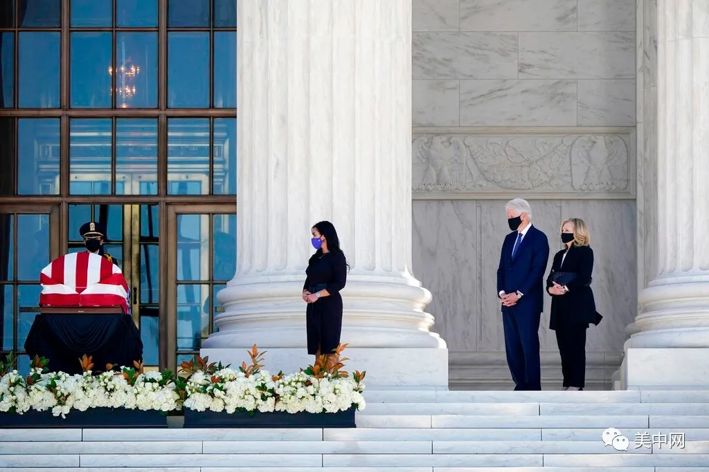 前总统比尔·克林顿和前国务卿希拉里也抵达最高法院表达敬意。1993年,克林顿提名金斯伯格为最高法院大法官。