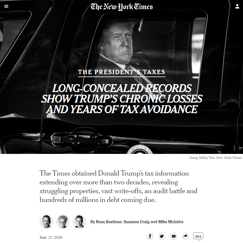 《纽约时报》获得了川普总统及其公司20多年来的纳税申报数据。长期以来,川普都拒绝公开这一信息,这使他成为数十年来第一位隐瞒基本财务细节的总统。