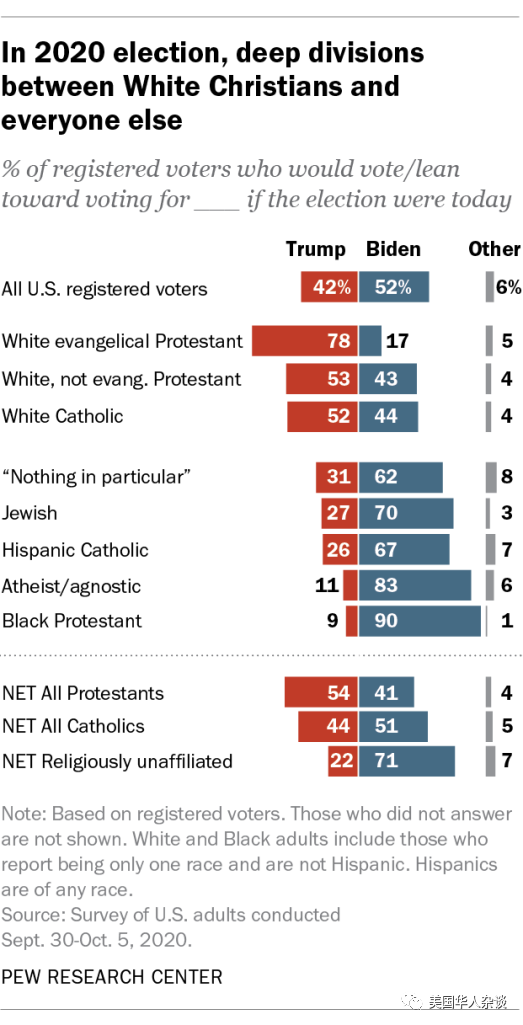 上图是皮尤中心在2020大选前做的民调数据,显示了川普在保守派基督徒中的支持率下滑 https://pewrsr.ch/3njtgRA