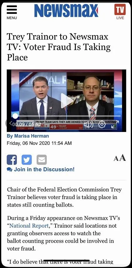 地址:https://www.newsmax.com/newsmax-tv/trey-trainor-fec-trump-2020-election/2020/11/06/id/995772/