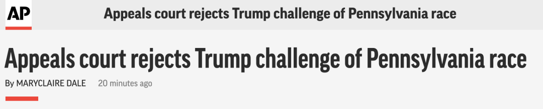 美联社对川普团队诉讼被驳回的最新报道 详细编译见后