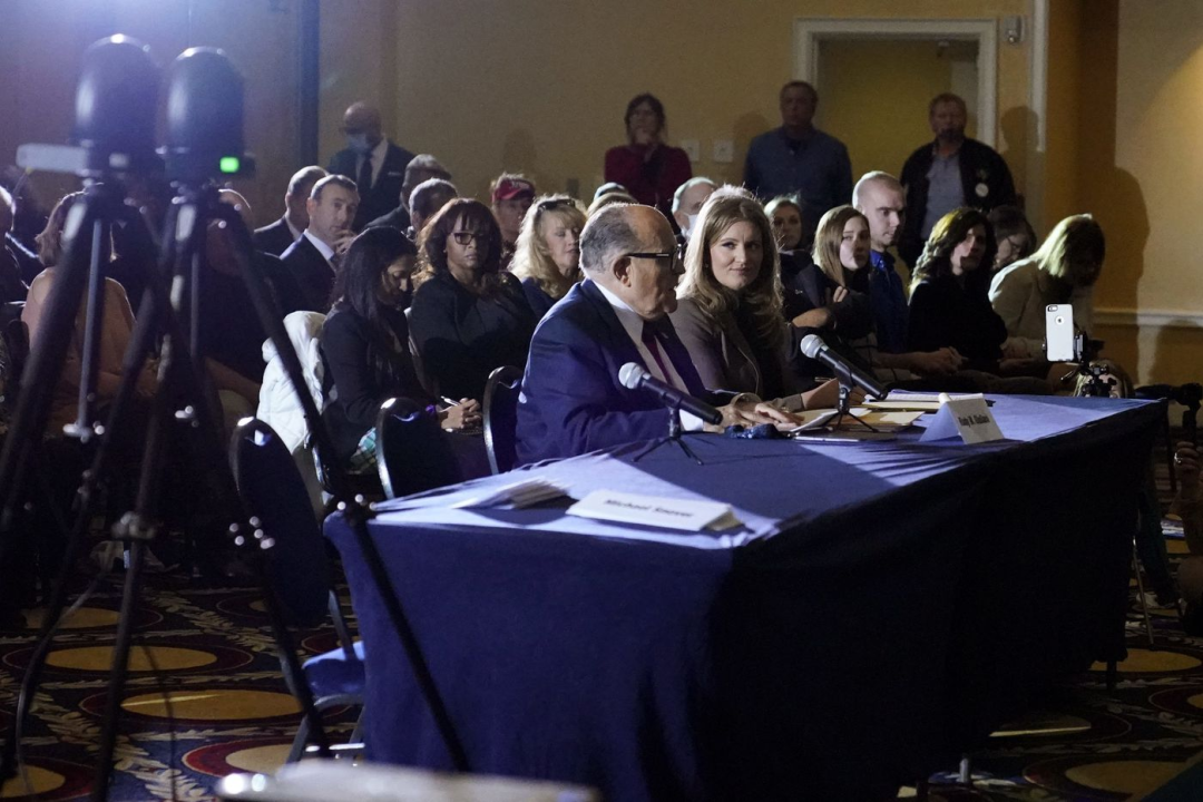 事实上,以上并非本周宾州唯一的大新闻,就在周三,包括朱利安尼在内的川普律师与多名共和党议员、官员在宾州召开了一次听证会。听证会主要是听取川普总统的律师朱利安尼申诉要求将宾州260万邮寄选票作废。