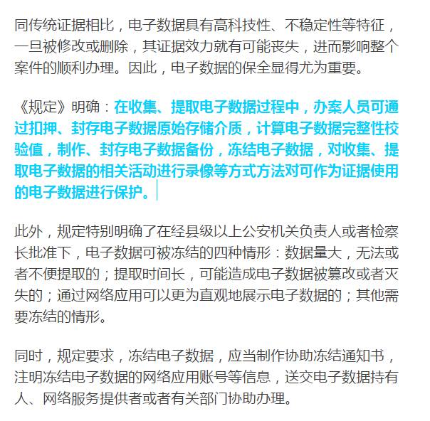 近日,最高人民法院、最高人民检察院、公安部联合出台了《关于办理刑事案件收集提取和审查判断电子数据若干问题的规定》,自2016年10月1日起施行。