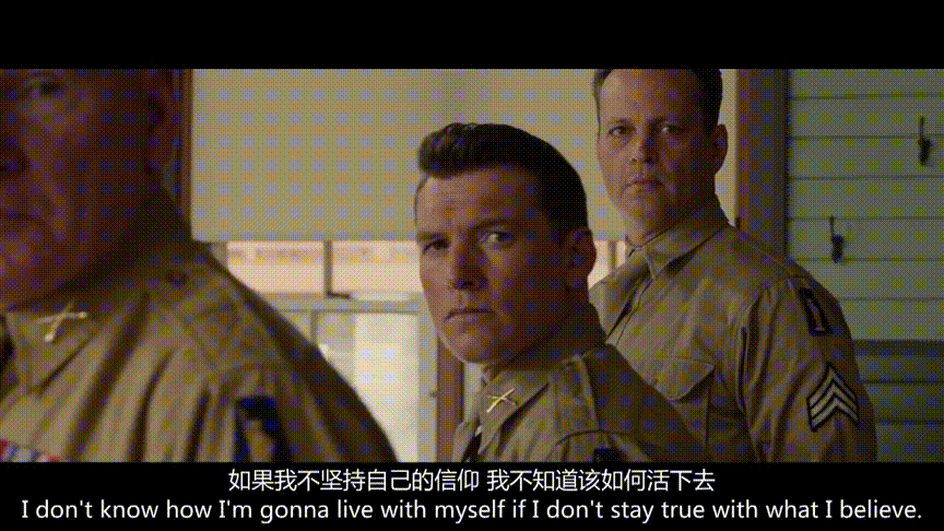 他说到自己一生的信念就是去救更多的人,而自己从军就是要保卫国家,但他要用《圣经》的方式,不是用杀戮的方式。