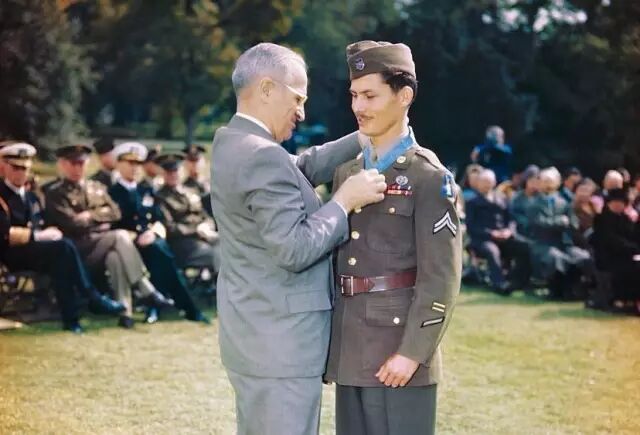 1945年10 月他从杜鲁门总统手中接过美国最高荣誉勋章,成为美国历史上最伟大的二战英雄,1962 年他再度代表二战军人,蒙美国总统约翰‧肯尼迪的接见。