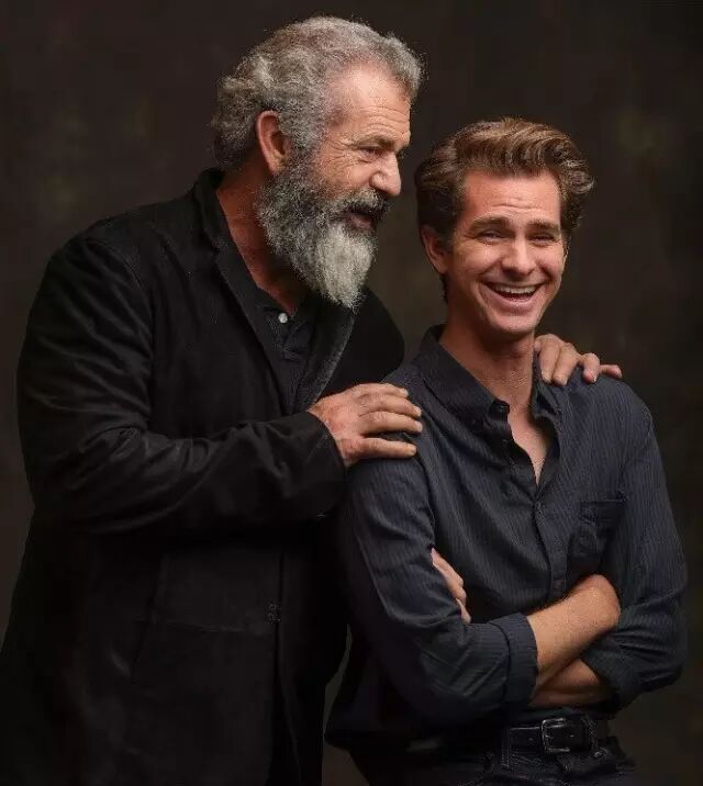 《血战钢锯岭》导演梅尔·吉布森和男主演安德鲁·加菲尔德