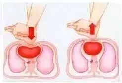 图 1:按压手型 按压部位:胸骨中下段1/3交界处,二乳头连线的中心。