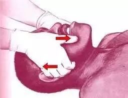 开放气道势在必行,有氧循环方能救命。 如果忽略气道开放,心肺复苏难以成功。 先让患者成仰卧位,口腔异物还要除净。 可以选择仰头提颏,这个方法最常应用。 一手下压患者前额,一手提起下颏正中(图 1)。 颏耳连线 90 度角,鼻孔朝天最为适中 。