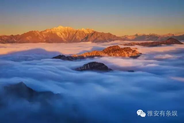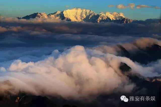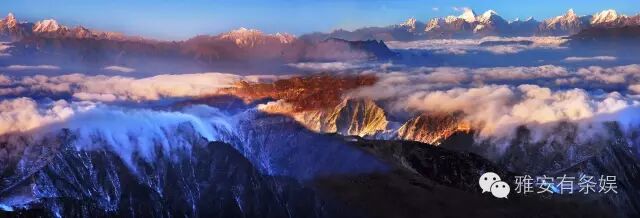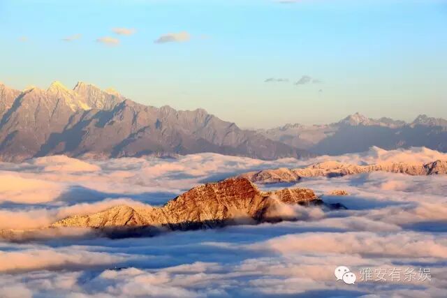 牛背山海拔3660米左右,它四面环山中间突起的独特地理位置,使它获得360度全方位“中国最大的观景平台”和绝佳摄影圣地的美称。泥巴山、瓦屋山、峨眉山、夹金山、四姑娘山和二郎山在前,贡嘎雪山在侧,大渡河大峡谷在后,几乎天府之国的所有名山峻岭在此时都变成了玲珑盆景。