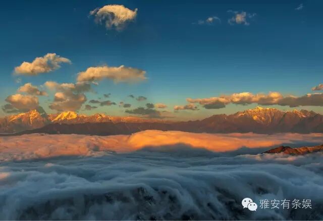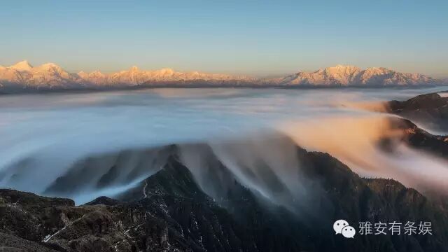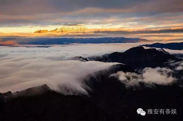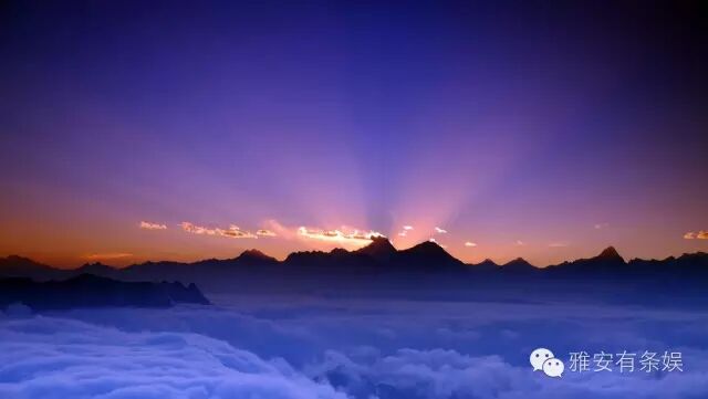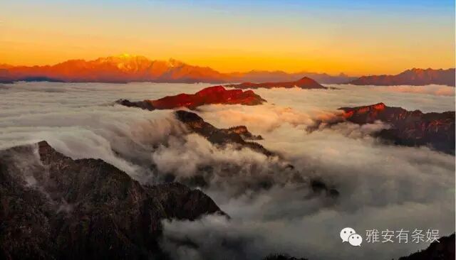 牛背山的云,浓密而均匀,时而平缓,时而汹涌,时而沿着山脊倾泻而下,其壮观的云瀑无以能比,让人感觉踏步于空中,如仙如神;四周连绵不断的群山错落有续,层次分明,让人油然而生一种渺小的感觉,恨不得立即飞到云层之上。 2 二绝:牛背山夕阳
