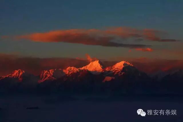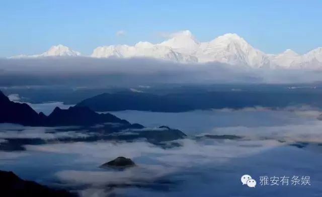 胡伶说,雾来云往时,青山莽莽,层层叠叠,曼妙柔纱,亦幻亦实,伸手可及,美轮美奂,“让人顿生沉静、淡泊、禅悟的心境,坐忘其间”。 4 四绝:远观贡嘎雪山