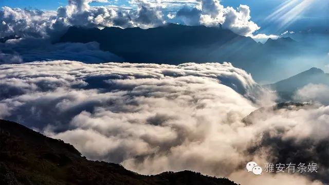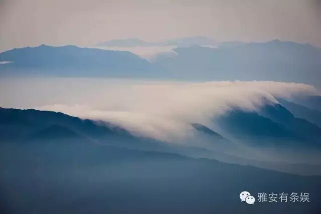 牛背山的云海不仅浓密、纯净,而且磅礴、奇幻。那些云朵,可以从几千米高的地方,随着一阵风冲向谷底;也可以成为巨大的“云瀑”,在眼前滚滚飘逸、永不停歇。