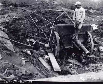 1944年9月8日,一名中国士兵站在一台刚刚缴获的火炮上。中国第八陆军炸毁了日军占领的碉堡,剿灭十五名日军。