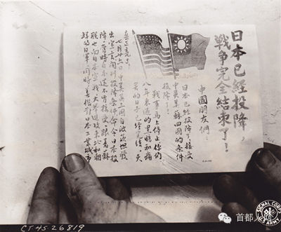 1945年8月22日,日本投降后,散发给日本占领区的中国人的传单照片。