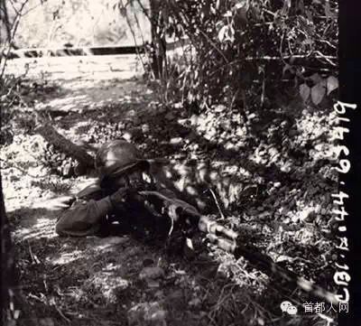 巴莫,缅甸北部。中国卫兵在散兵坑中监视战地边界。这个战士要确保敌人无法渗透防线,而日军只有一百码远。