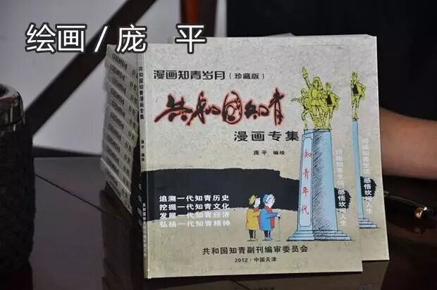 残阳絮语 庞平,天津老知青,1970年上山下乡到黑龙江生产建设兵团六师25团3营。他在农场做过农活,盖过房,喂过猪,放过牛,养过蚕,当过统计,兼任过司务长,最后当上了电影员。 他喜欢画画,当时农场放露天电影,连队之间需要“跑片”,等待的时候工人们很无聊,于是庞平就画了一些幻灯片在“跑片”时放映,帮助大家度过这段无聊时间。庞平画的多是夸张幽默的漫画形象,大家看着都乐,他绘画技巧也正是这样不断地提高。 2013年,庞平的《共和国知青》漫画专集出版,这是他从事漫画创作32年来耗费心血最多,涉猎面最广、影响力最大、珍藏价值最高的一部普及性知青文化作品。 图为庞平和他的《共和国知青》漫画集