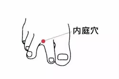 取穴:内庭穴位于足背第二、三趾间缝纹端。