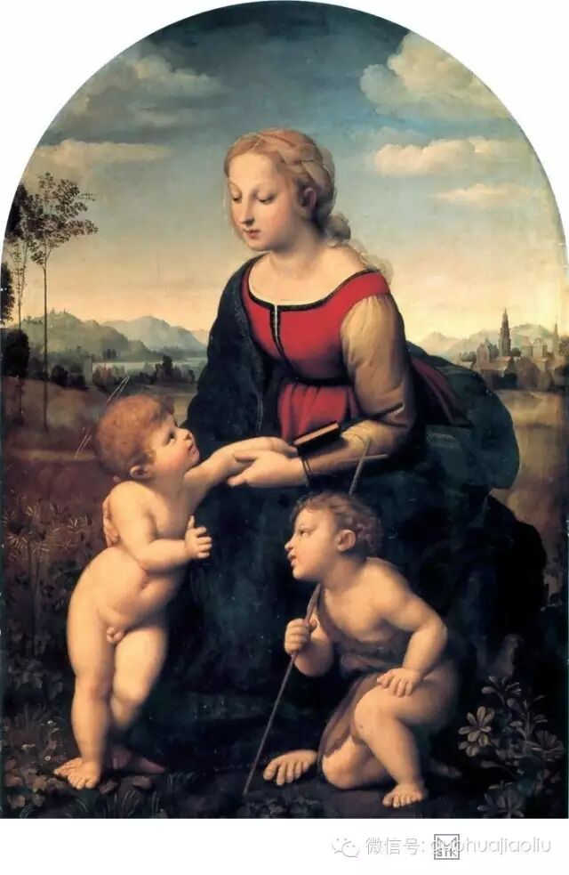 60、拉斐尔——花园中的圣母 一天,拉斐尔在花园中散步,看见一位美丽的少女正在花丛中剪枝,艺术家被她那富于魅力的形象所吸引,立即敏捷地将这位姑娘的形象速写下来。不久,他用这位少女做模特儿,创作了这幅名画。