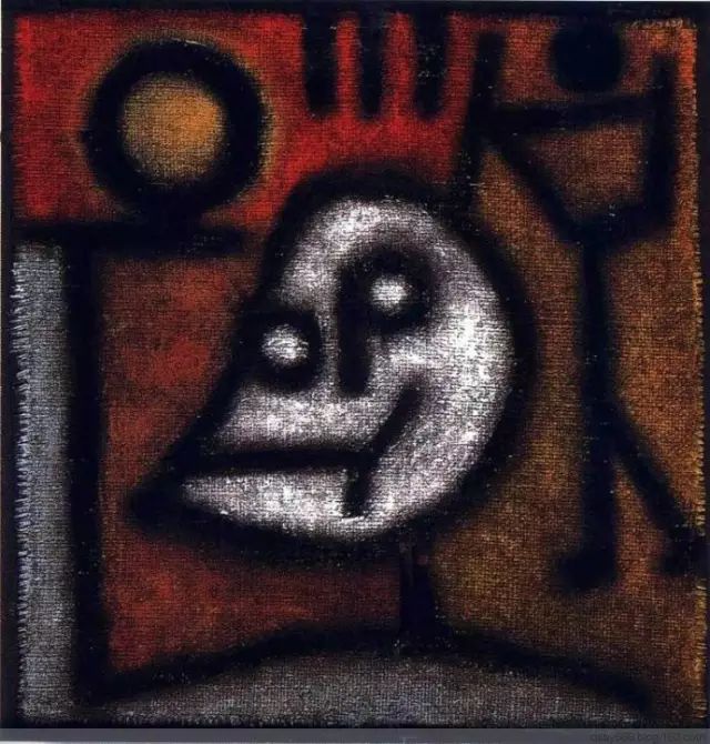 80、死与火 克利 瑞士 1940 年 46 × 44cm 布面油画 瑞士伯尔尼克里基金会 《死与火》是画家在生命的最后岁月,身患重病的情况下创作的,画面上弥漫着一种浓厚的凄凉和哀愁的氛围,充满艺术的感染力。画中粗重的黑色线条隐藏着一种不堪负荷的沉重。