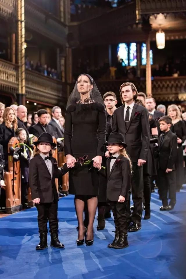 在葬礼上, 席琳强忍悲痛, 带着孩子们给雷尼送别。