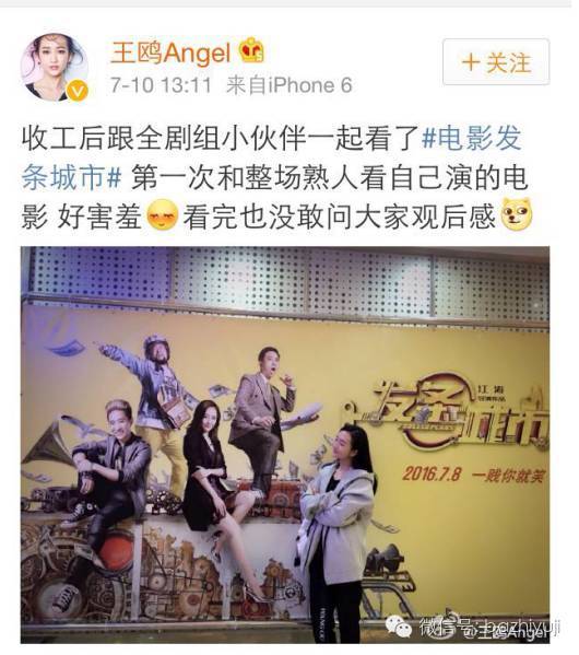 看电影的时候是今年7月份, 当时两人正在合作拍摄《周末父母》。 时间人物都对得上, 但有热心网友找出当时王鸥的微博, 说的是请全剧组一起看的。 好吧,八妹就当是剧集杀青新剧开拍的炒作热身。