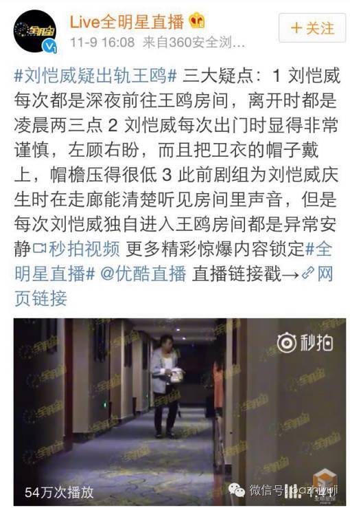 先后甩出多条证据。 网上流传出的安插在酒店走廊的摄像头拍到的视频, 刘恺威晚上来回几次进入王鸥的房间, 先是和助理,最后独自进去待了四个小时才出来。 视频中刘恺威一会拿着Ipad一会捧着电饭煲。