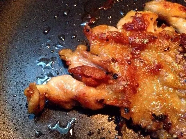 -- 用料 -- 鸡腿 一只 黑椒 适量 蚝油 适量(没有的话可以省略) 盐 适量 -- 做法 -- ❶ 把鸡腿去骨,让鸡腿肉可以平铺开来。可以适当在肉上面有筋或者比较厚的地方切几刀,但不要切断。这样可以避免煎的时候缩成一团。 ❷ 鸡腿两边各抹适量的盐,再抹一层蚝油。 ❸ 鸡腿两边分别抹一层黑椒,不怕辣的话可以多放点,黑椒味够的话会很好吃。 ❹ 滴一点点油在平底锅中心,然后把有鸡皮的那一面朝下放到锅中,开火,小火煎十分钟。滴的油不需要多,因为鸡皮本身就会提供足够的油。 ❺ 翻面,小火煎八分钟,出锅。