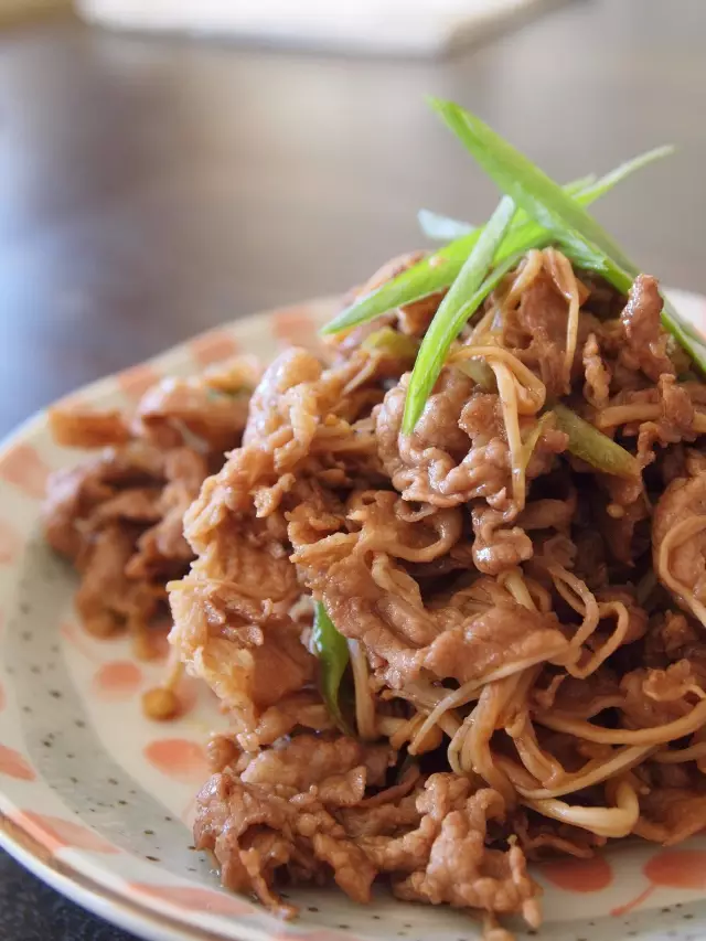 -- 做法 -- ❶ 牛肉卷解冻,放入米酒,生抽腌制5~10分钟。 ❷ 锅内热油,放入金针菇炒至半熟,放入腌好的牛肉,迅速炒开。 ❸ 放糖,葱丝。炒拌均匀,放入适量盐调味出锅即可。