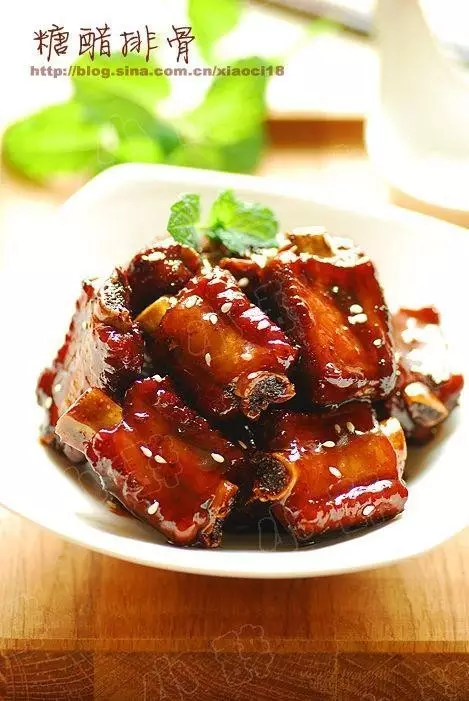 -- 做法 -- ❶ 猪小排冼净,晾干水份备用。 ❷ 锅内倒少量油,烧热之后,爆香姜片。 ❸ 放入排骨,一直煸炒到排骨变色后,表面金黄微焦。 ❹ 此时就可以放入黄金比例中的调料了,顺序是:先放一汤勺料酒,接着两汤勺酱油,三汤勺米醋最后四汤勺白糖,炒匀。 再倒入能没过排骨的开水,调中小火焖20分钟。 ❺ 20分钟后调入盐,开大火收汁,收到汁浓色亮时,撒入芝麻点缀即可出锅(锅里剩下的姜片丢掉不用,最后大火收汁时注意多翻动锅内的排骨,避免烧焦哟!)