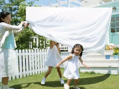 母亲爱晒被子。只要天气晴好,她必定会把家里所有被子抱出来,一床一床摊开在晾衣绳上翻晒,白色的被里朝外,各色花样的被面掩在里面。