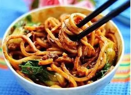主料:猪肉100克、鱼面100克 辅料:碎米、芽菜100克、花生(炒)适量、小白菜适量 调料:色拉油适量、食盐适量、酱油适量、醋适量、鸡精少许、葱适量、姜适量、蒜适量、料酒适量、香油少许、白糖适量、辣椒油适量、花椒油适量、猪油(板油)适量 做法: 1.用油爆香葱姜蒜末,炒出香味后加入猪绞肉; 2.将绞肉炒散,喷料酒和酱油去腥增色; 3.加入碎米芽菜同绞肉同炒,炒匀后视酱油的咸度补少许盐调味,盛出备用; 4.锅中放宽水煮鱼面,鱼面快熟时加少许盐,放入绿色菜同煮,至绿色菜断生将菜和面一起捞出控干水分; 5.将芝麻酱、香油、辣油、花椒油、葱末,蒜末,花生碎,生抽少许的糖、醋和鸡精,一起调兑成碗汁,置于准备吃面的碗底; 6.将面放在碗汁上,表面码上绿色菜和炒好的肉臊,还可以在表面也点缀些花生碎(我给忘记了),食用时将面和碗底的调料拌匀即可。