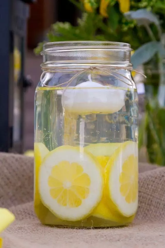 切成薄片,放在玻璃瓶里,倒入大半杯水,浸泡半小时。