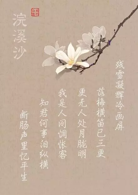他的生命中还曾有另一个女子匆匆走过,就是沈宛。沈宛为江南艺妓,才华横溢。纳兰曾纳沈宛为侍妾,后被迫分离。不过,容若似乎对这段分离始终耿耿于怀,总是觉得自己辜负了她。“近来怕说当年事,结遍兰襟,月浅灯深,梦里云归何处”。几分自责,几分自嘲。