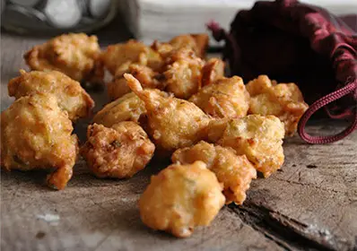7 油锅烧热,用手把面糊挤成小丸子放入锅内。