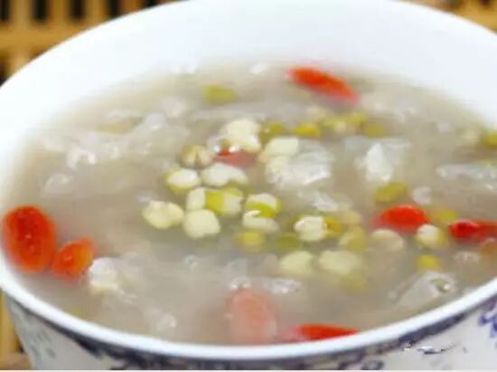 绿豆100克、银耳20克、枸杞20克 冰糖10克、水适量