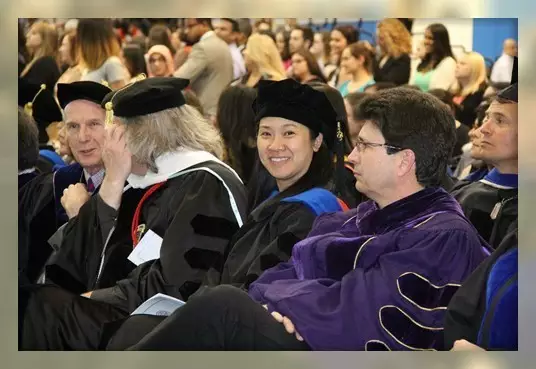 肯恩大学一年一度的优秀生毕业典礼上,老师们穿上自己的最高学位服来为学生祝贺。 记者:这条路很难,但是也很有意义,期待您不断取得好成绩,也期待通过您,让更多的美国人了解中国文化。