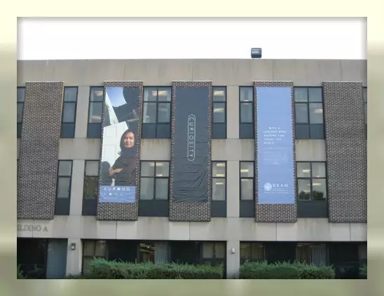 肯恩大學校園內懸掛着孔旭榮的大幅照片,稱為“求知慾”海報。