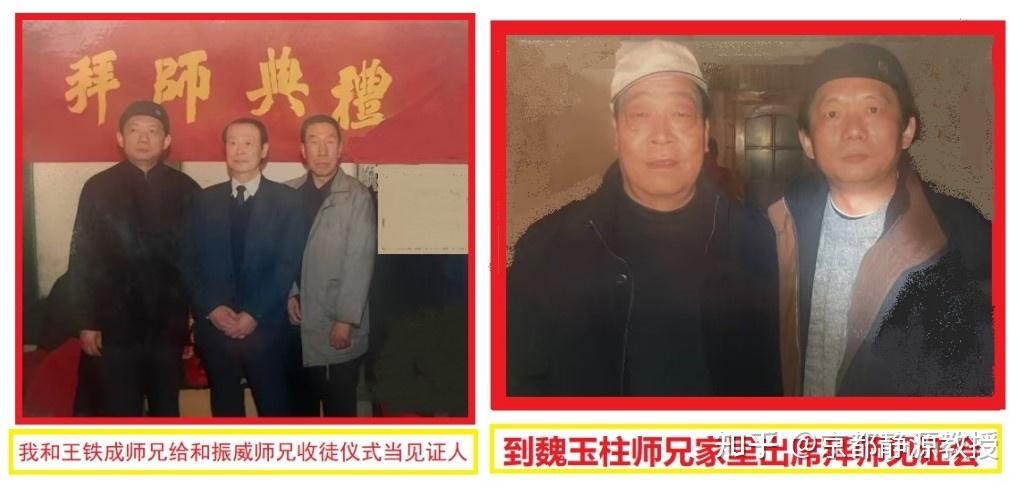 有那麼一句話說:“多年父子成兄弟。” 我跟李見宇師傅學拳這麼多年,我對他了解太深了。他對我的了解也是一樣,我們之間就像親兄弟一樣,無話不談。甚至他還和我商量怎麼和一個想嫁給他的女人相處?因為李見宇師傅不想再結婚了,他知道他的房子和財產問題是個大麻煩。而且我也很同情他,晚年孤單一個人。我不可能在我移民到美國之後,把他帶到美國,因為美國移民法律不認可中國的師徒關係移民贍養資格,也不容易辦理。所以我從2010年2月開始在上海工作的短暫時間裡,就經常跟他在電話中聯繫,問一問他這周活得怎麼樣?有什麼大事?他也跟我說“這周我又教誰了、誰又到我家來了”等等。不用說,他的這套話術用的越來越熟練了,連我都可以在電話中模仿出來,讓他哄堂大笑。甚至在2013年元月開始,我每年往返美國、北京、上海三地時,也經常不忘記和他電話溝通。 偶爾到了北京,總被師兄弟們叫走出席拜師儀式見證會,讓我當見證人。絕不是因為我的美籍華裔身份,而是因為我的公正客觀、我的歷史學教授身份還有我的正宗直系第三代衣缽傳人的資格,這才是我當他們各自門下拜師弟子見證人的根本原因。 我作為見證人的部分拜師見證會照片,見如下: