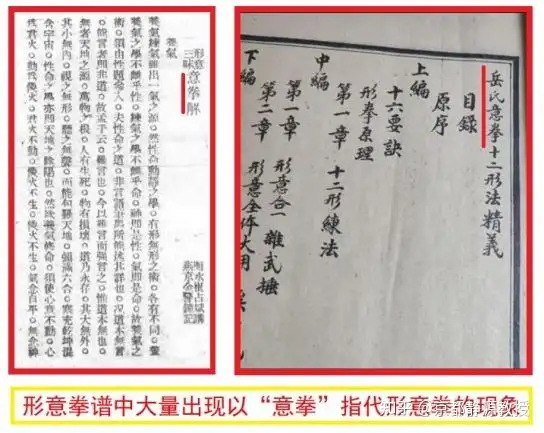喜欢使用“意拳”来简称“形意拳”,就连《形意拳拳谱》都是这样使用的。见《形意三味意拳解》和《岳氏意拳》,如下: