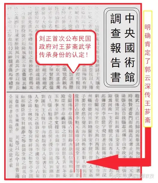 1928年,在中央国术馆写给当时民国政府教育部的“调查报告书”中,我们发现这份“调查报告书”十分明确地认定王芗斋是郭云深的入室弟子。这是官方出面对王芗斋身份的正式肯定!又是我第一次发现并将其对外公布出来。这份珍贵的调查报告书截图如下: