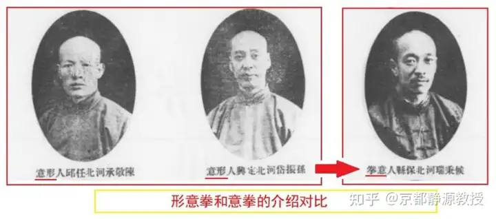我们可以说,当时的比武大会主办方是很清楚“形意拳”和“意拳”的区别的,因为王芗斋就是现场裁判委员会成员之一。比如下面的自我介绍,前两者明确是形意拳,后者却是意拳: