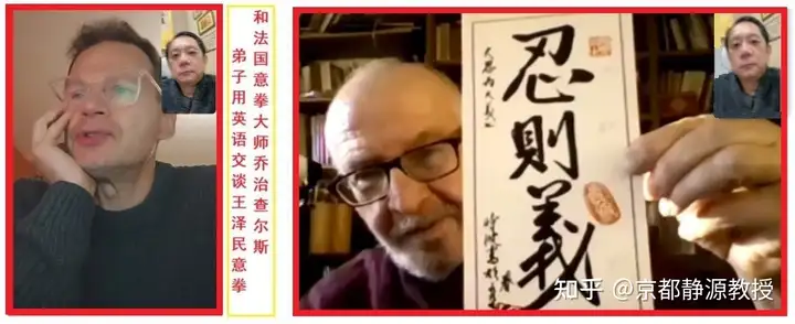 上述法语内容是介绍了乔治·查尔斯在美国留学时,被黄仁宇教授推荐他回法国后拜师自己的好友、意拳大师王泽民学习意拳的经过。下面是我和他们师徒视频交流截图: