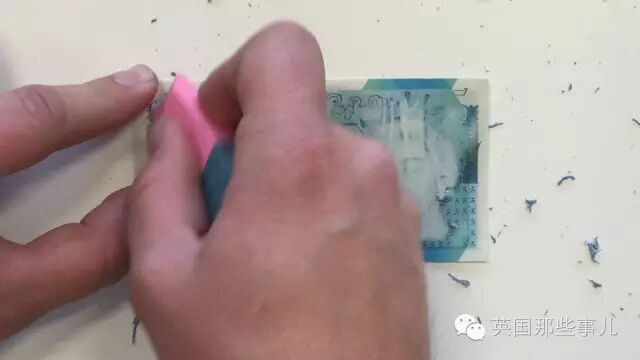 总之就是“上刀山下火海”,被各种玩坏… 然而英国群众们并没有消停….最近有人就萌生了一个脑洞… 【橡皮擦能擦掉纸币上的图案嘛??】 在强烈的好奇心驱使下…还真有人这么试验了! 我擦!我擦!