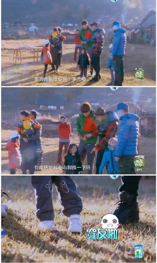别家的孩子阿拉蕾头发没梳,鞋也穿反了,张伦硕一眼就看透了问题,对董力直言“实在看不下去了”。可以看出张伦硕带孩子多熟练啊。