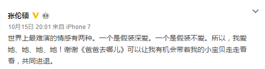 对于张伦硕,小姑娘虽然当着面不好意思,但是在外人面前“爸爸”叫得特别响亮、特别自豪!