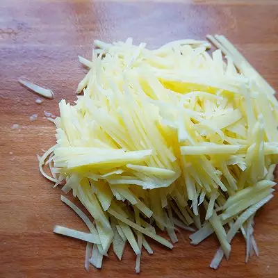 2.土豆去皮洗净切细丝。
