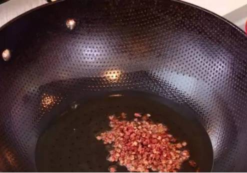 锅里放油,烧到七成热时放入花椒,爆香后捞出。▽
