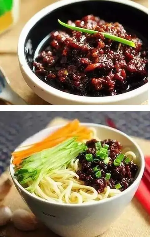 2.海天黄豆酱、甜面酱以3:1混合,根据口味可加入1份量的老干妈豆豉辣酱。