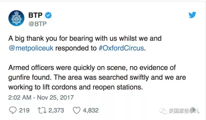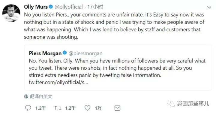 半个多小时后他才更新表示 “有人告诉我selfridges里没有枪击,我也不知道发生了什么”